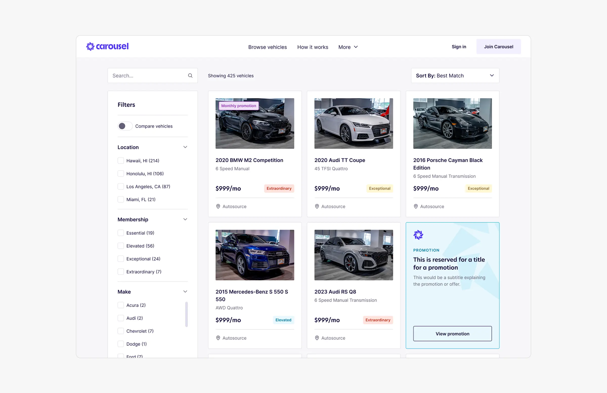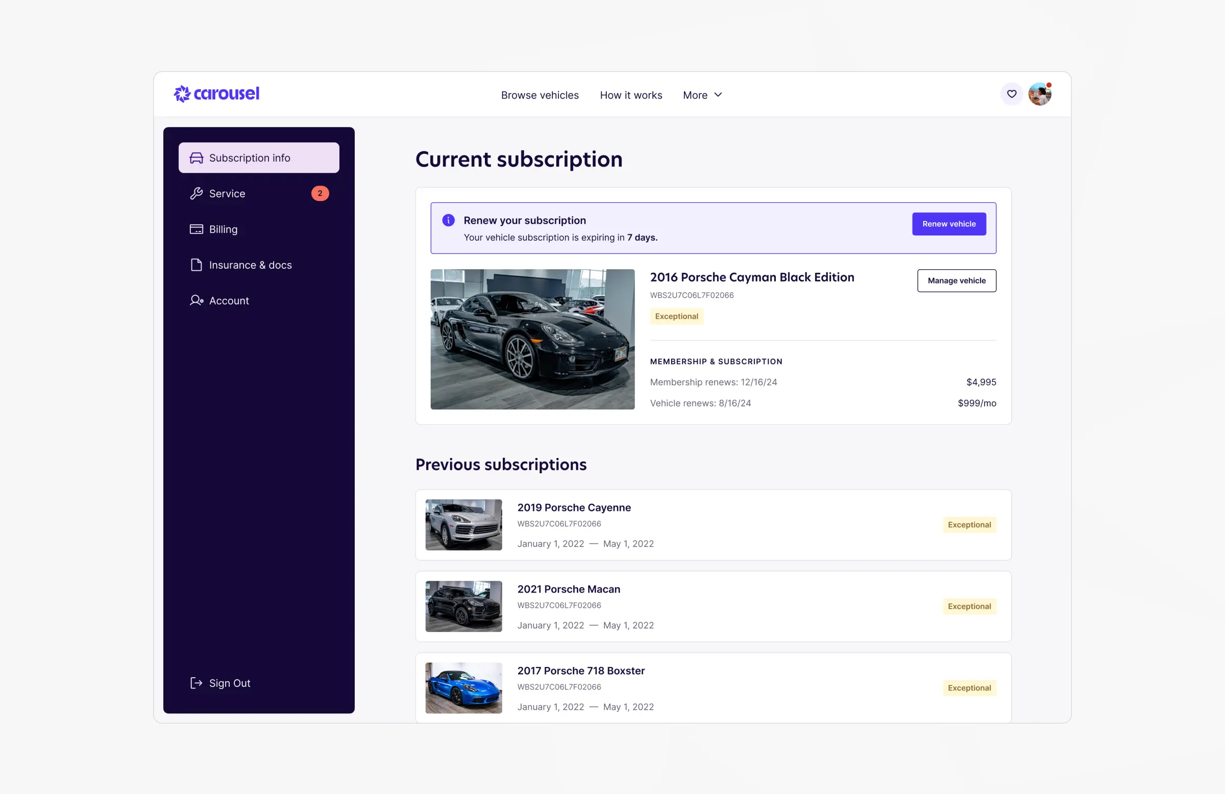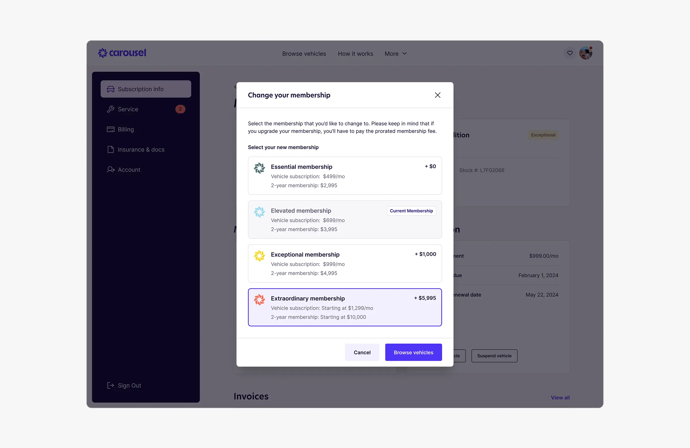 We partnered with Carousel, a vehicle subscription service that makes car ownership effortless, to redesign their digital experience. The new platform replaced messy spreadsheets with a seamless booking flow, client portal, and powerful admin tools.