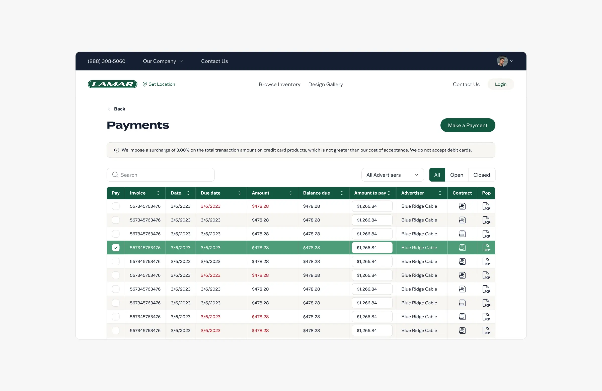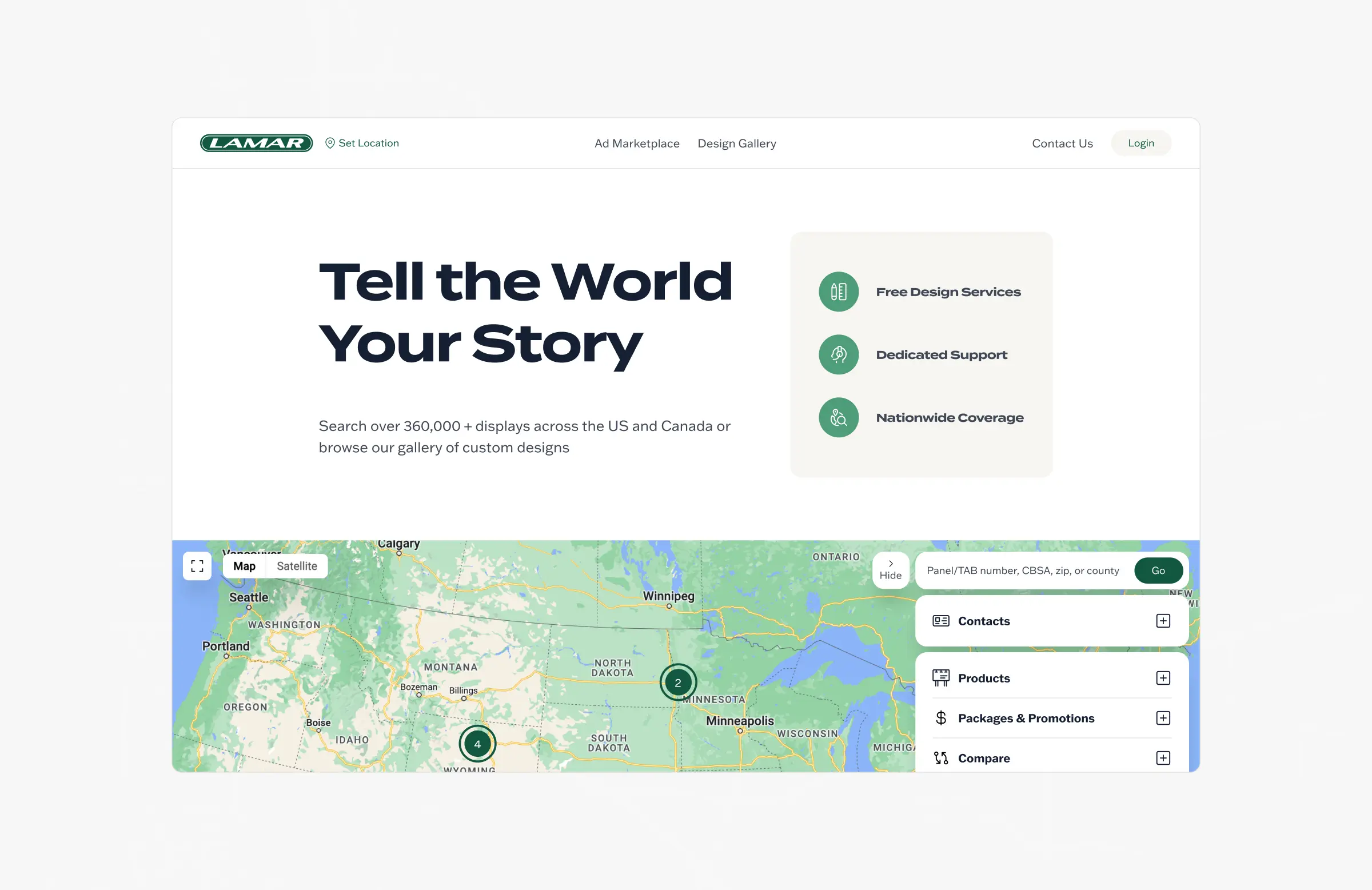 We transformed Lamar’s booking experience by taking their long-held over-the-phone workflow and building a sleek online web platform for searching, selecting and securing billboard inventory. The redesign makes it faster, more transparent and digital-first for advertisers to launch out-of-home campaigns.
